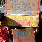 ‘We talked back, calmly and quietly, playing by their rules. We worked our asses off, while staying obediently in our ‘diversity’ and ‘awareness’ corners. The margins belonged to us, in part, because we were educated and light. We asked, politely and intelligently, to please not kick our issues off the agenda again. We waited for that moment of inclusion….We appealed to a false rhetoric of Community and Experience, and saw our labour converted into ever new money-making enterprises for white people, read our words translated into ever new p.c. acronyms, for policies made up to keep us down. We defended queer and trans identity with our nails and our teeth, until we realized it had been turned to capital for a select few hyper-privileged opportunists. And yet we were afraid of losing this community, because at this time and place, in2000s London UK, where gender violence rules the streets……we had nowhere else to go. Tired as we were of being tokenized, patted on the head, divided, and ruled, we put up and we shut up. We probably sold out somewhere on the way. It was the war on terror that signaled enough was enough. The unhesitating support that British feminist, LGBT, trans, even radical queer activists have lent to their leaders under the auspices of ‘liberation’, ‘sexual citizenship’ and ‘gender recognition’, the enthusiasm with which gender activists are enlisting themselves as imperial citizens…..has finally forced us to keep eyes wide open. And we are – scared. But, even more, angry and disgusted and, increasingly, disloyal.