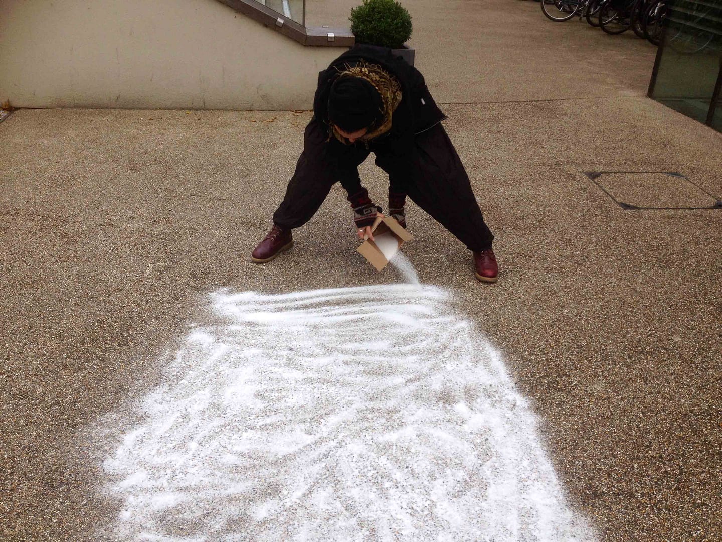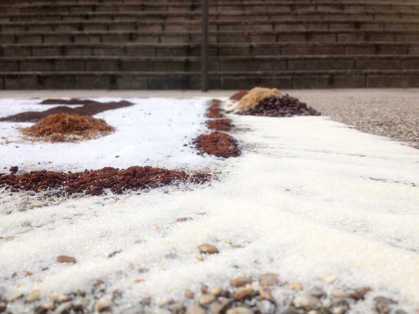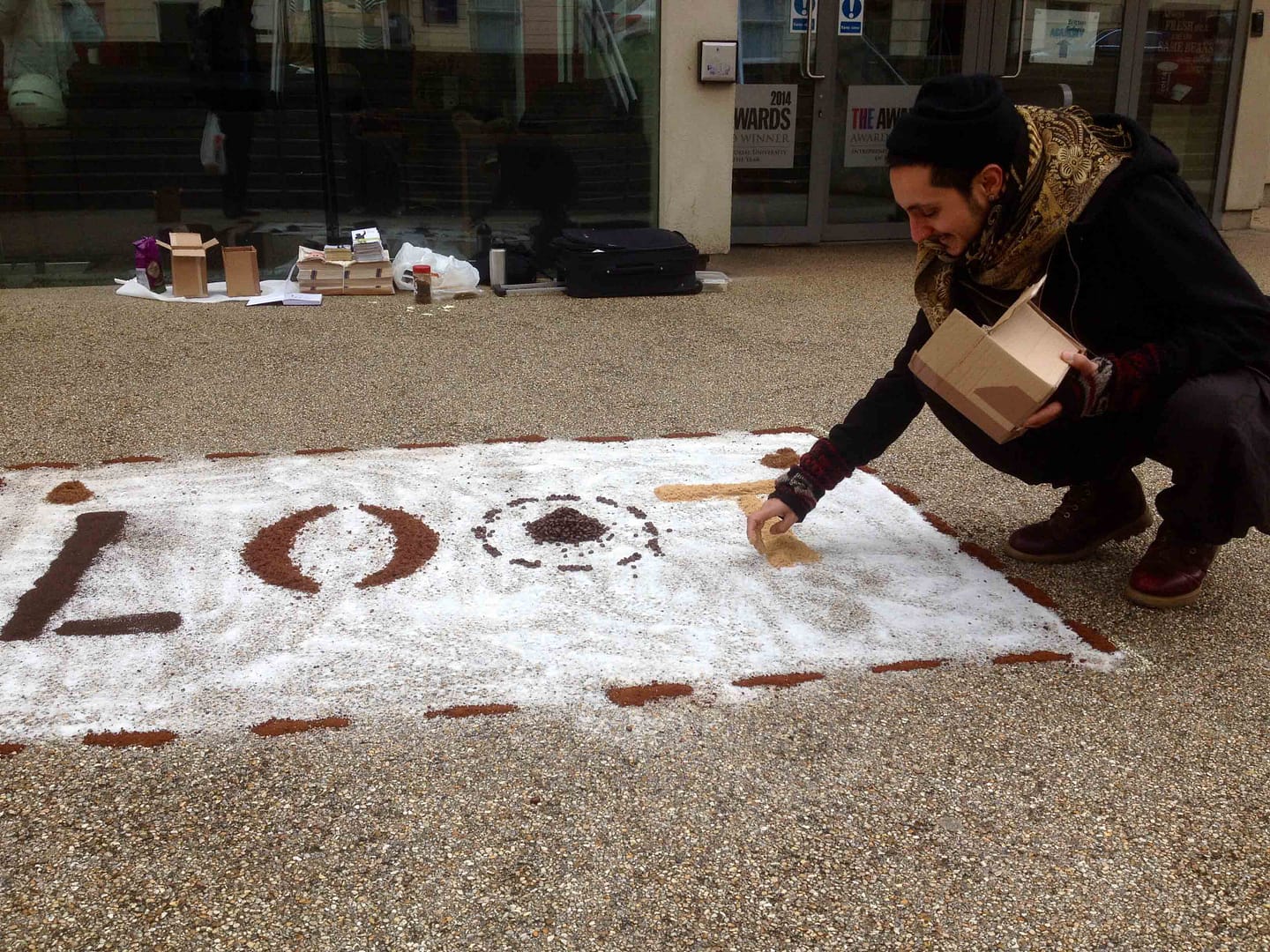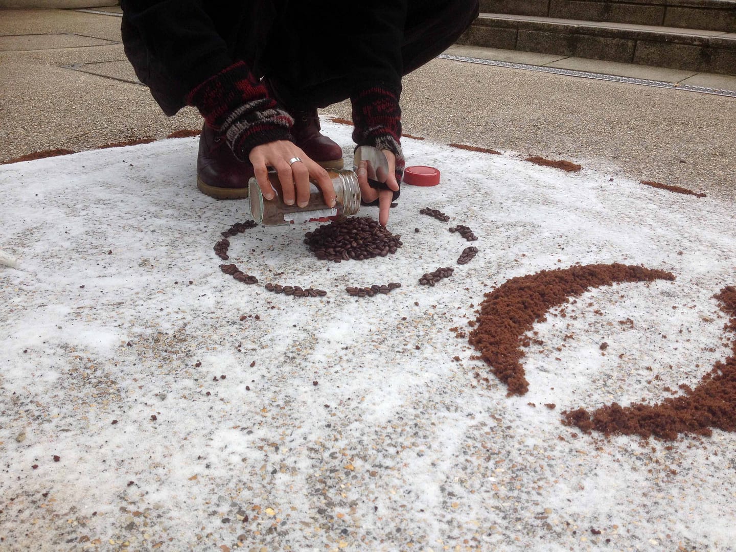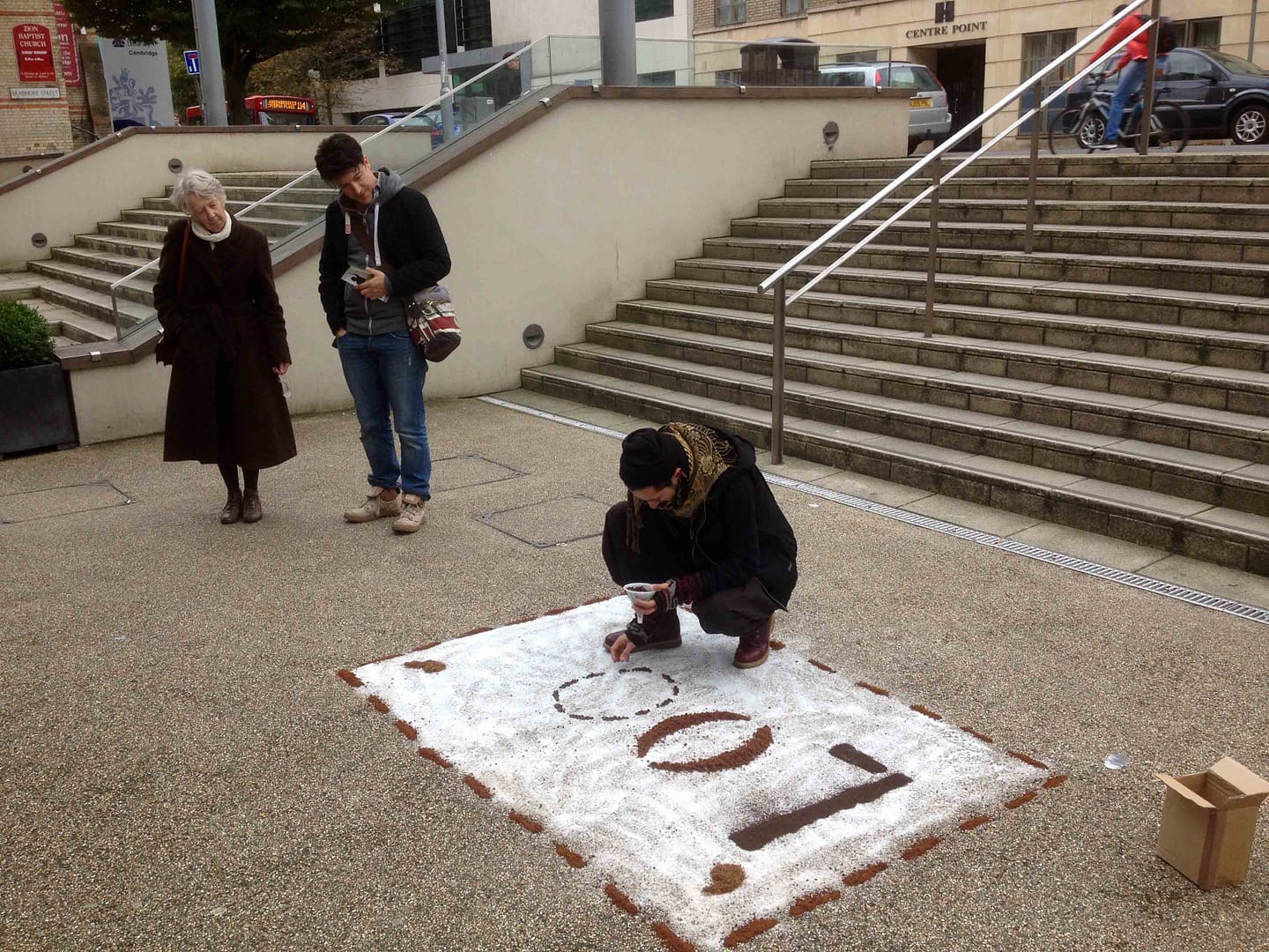 The 3 hour installation used sugar, tea, coffee and tobacco which were popular traded products by the East India Company. As I interacted with people with queries, I discovered that many had not heard the word ‘loot’, did not know its hindi-Indian origin, were aware of colonial trade but unreflective of the link between this colonial trade and the word ‘loot’ and their possible connection. A couple of passers by mentioned that they thought it was in response to universities becoming businesses and exploiting students with high fees and one stated that it was about the current exploitation by these multi-national corporations in these industries. Everyone who passed by were curious.