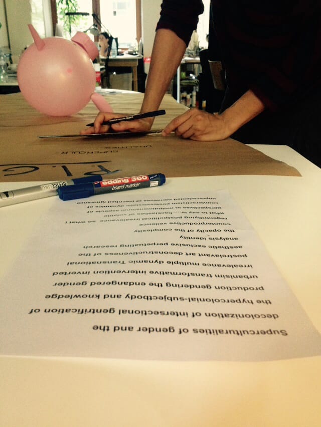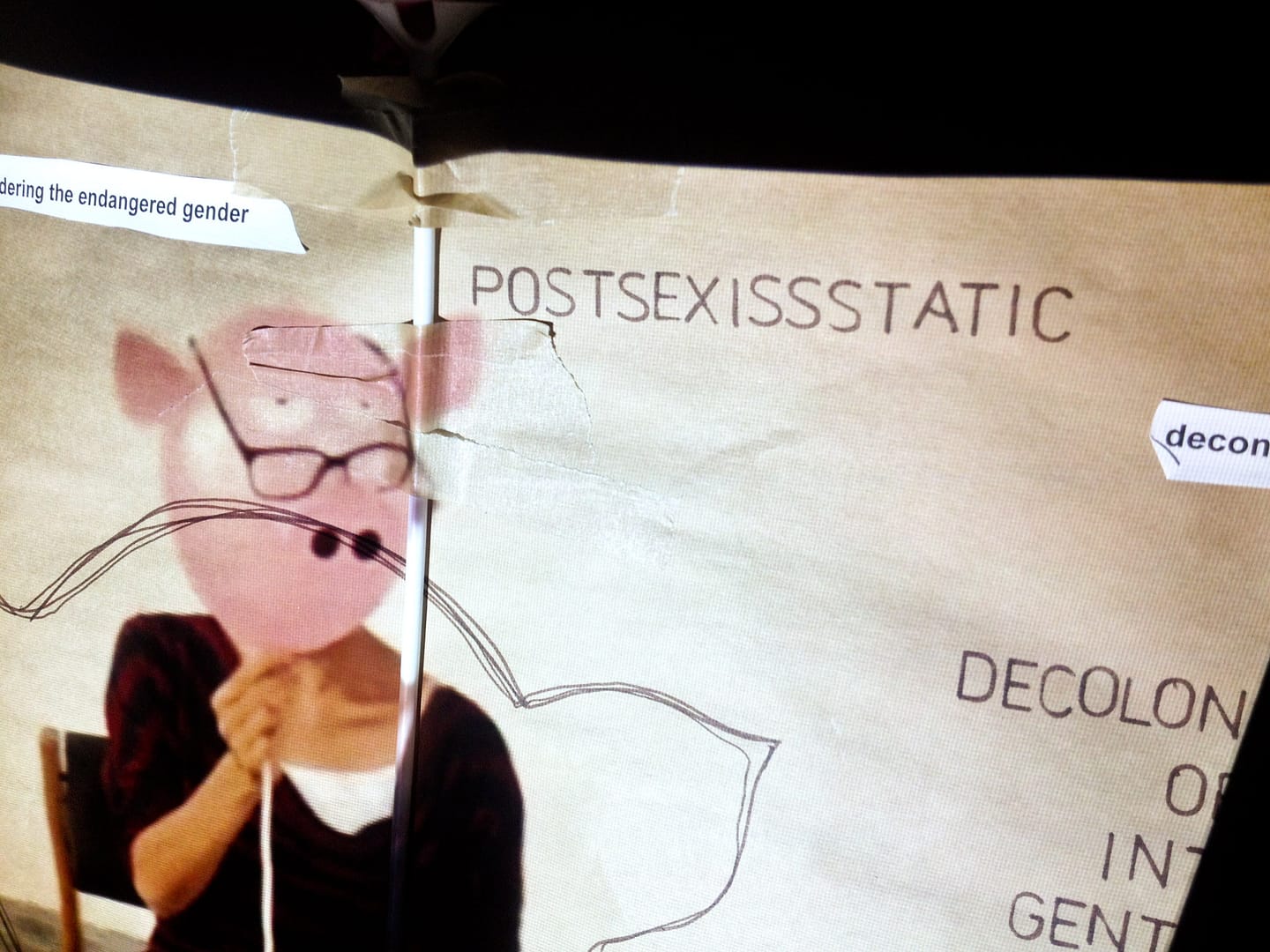 Superculturalities of gender*and the decolonization of intersectional gentrification of the hypercolonial*-subjectbody and knowledge production gendering the endangered gender* urbanisim transformative intervention inverted irrealevance multiple dynamic Transnational/ postrelavant art deconstructiveness* of the aesthetic exclusive perpetuating research analysis identity/ the opacity of the complexity counterproductive veilence regentrifiying postpolitical irrealevance so what i what to say is…..backlashes of volatile perspectives in multidimensional aspects of counteractivism postsexisstatic dynamics of unprecedented narratives of inscribed ignorance. Exhibiting the undiscovered intrinsic transformation of the the I. (*specfic contrbutions by Noah Sow)